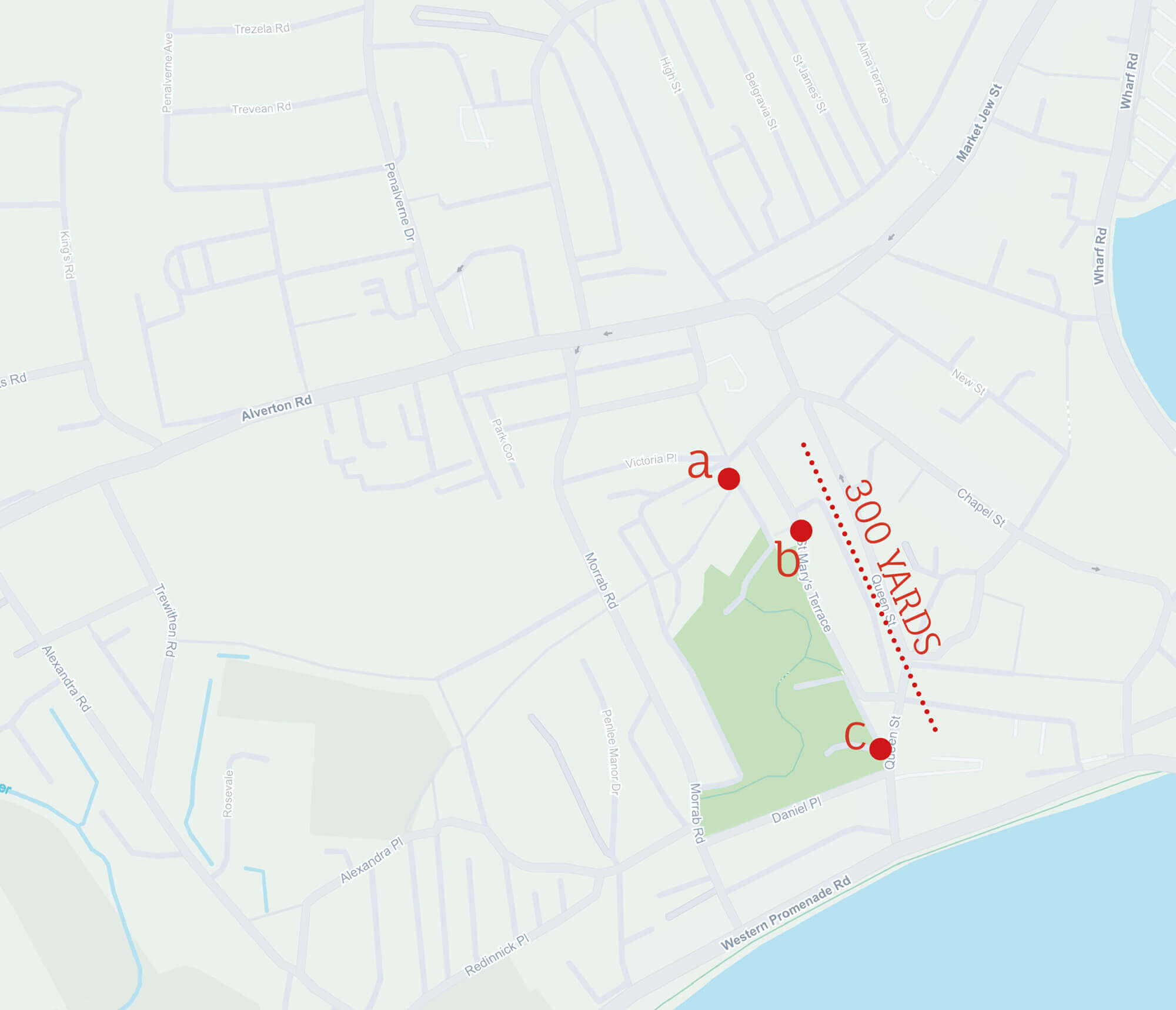 On the eastern side of Morrab Gardens are three housing terraces. Two of them directly abut the gardens and share boundries. The third is at the vehicular entrance to the gardens. All three terraces have similar characteristics and are noticeable contributors to the character and feel of the area.